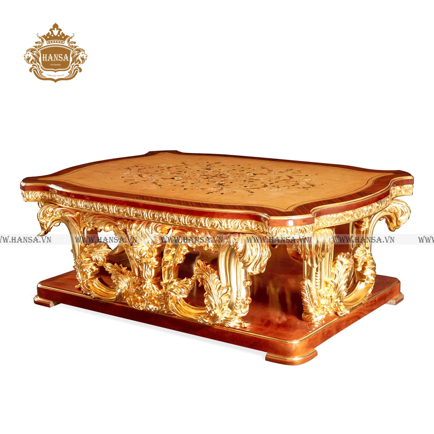 Bàn trà hoàng gia dát vàng cẩn hoa là biểu tượng của sự sang trọng, được thiết kế để trở thành linh hồn cho bộ sưu tập nội thất phòng khách đẳng cấp. Với sự kết hợp hoàn mỹ giữa nghệ thuật chạm khắc và kỹ nghệ ghép gỗ thủ công, sản phẩm mang đến vẻ đẹp quyền quý, tái hiện không gian sống của những cung điện Châu Âu ngay trong ngôi nhà của bạn.