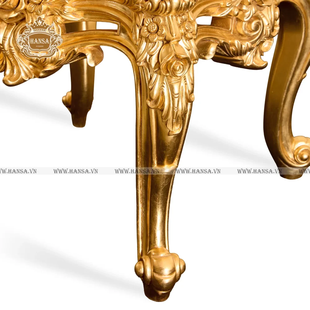 Phần khung đôn là nơi tập trung mọi tinh hoa nghệ thuật chạm khắc. Lấy cảm hứng từ phong cách rococo quý tộc, các nghệ nhân đã tỉ mỉ tạo hình những đóa hoa hồng, lá acanthus và các đường lượn sóng mềm mại. Toàn bộ khung được phủ một lớp mạ vàng sáng bóng, nổi bật trên nền đá tự nhiên, tạo nên sự tương phản lộng lẫy và thu hút mọi ánh nhìn.