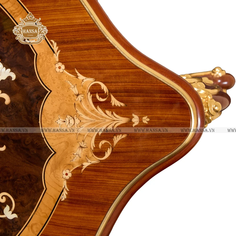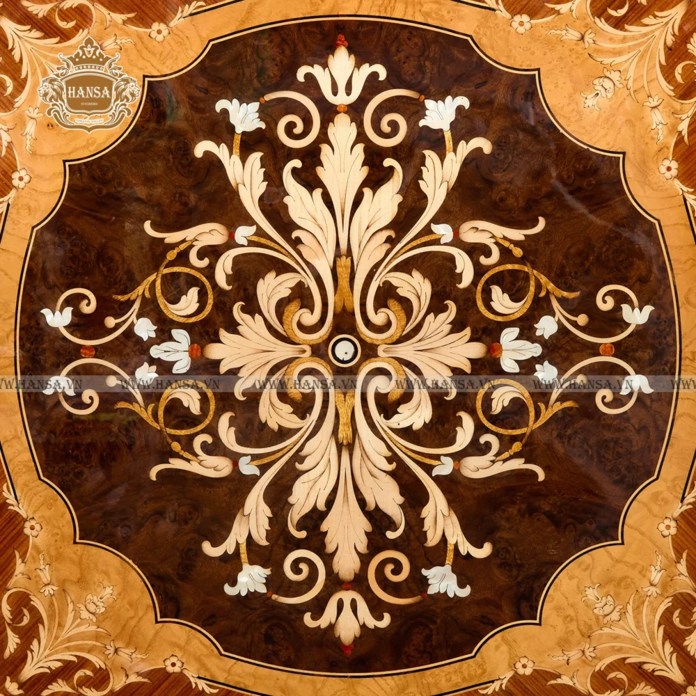 Đôn gỗ khảm hoa văn Rococo mẫu 03 là biểu tượng của sự sang trọng, đẳng cấp và tay nghề thủ công điêu luyện của các nghệ nhân tại Hansa.