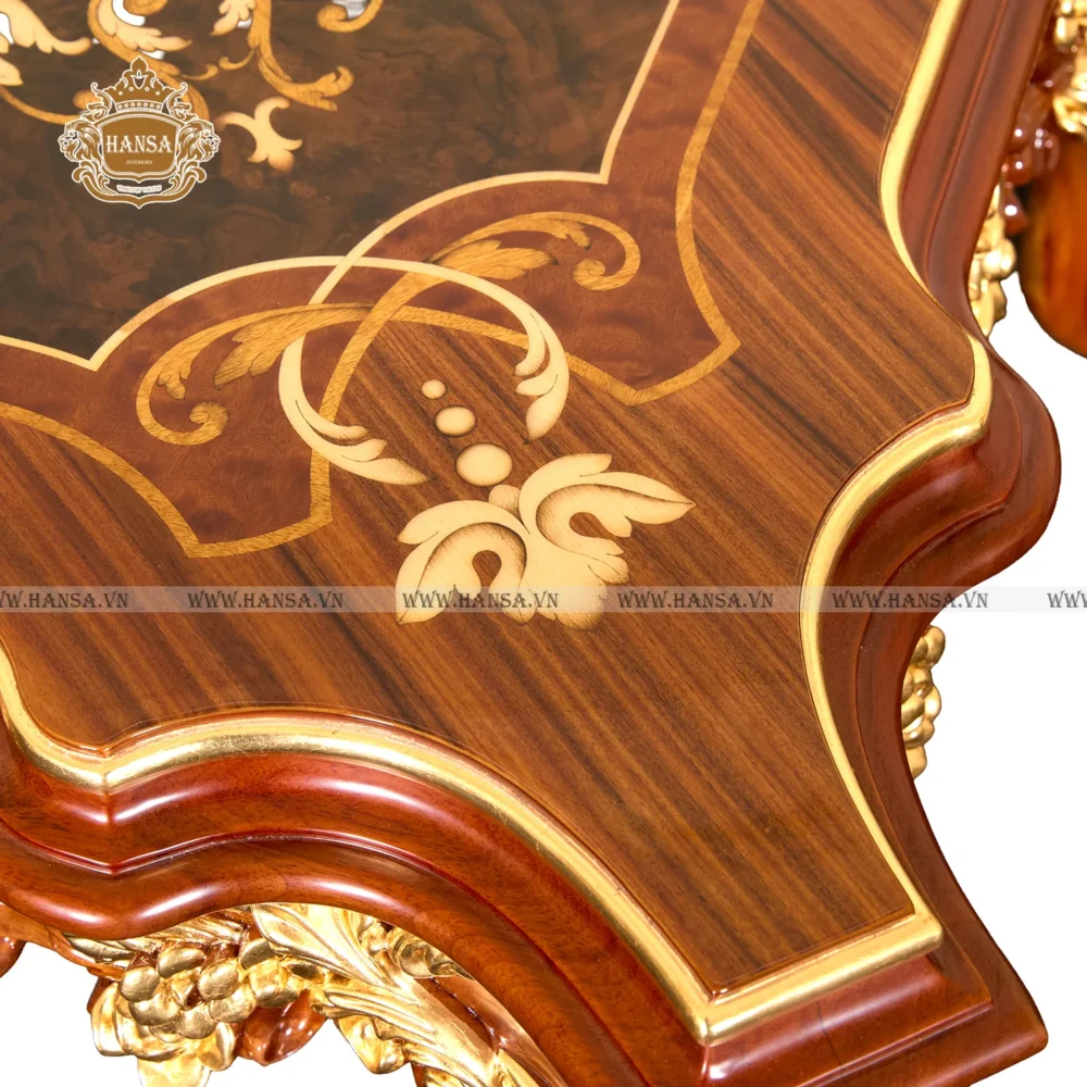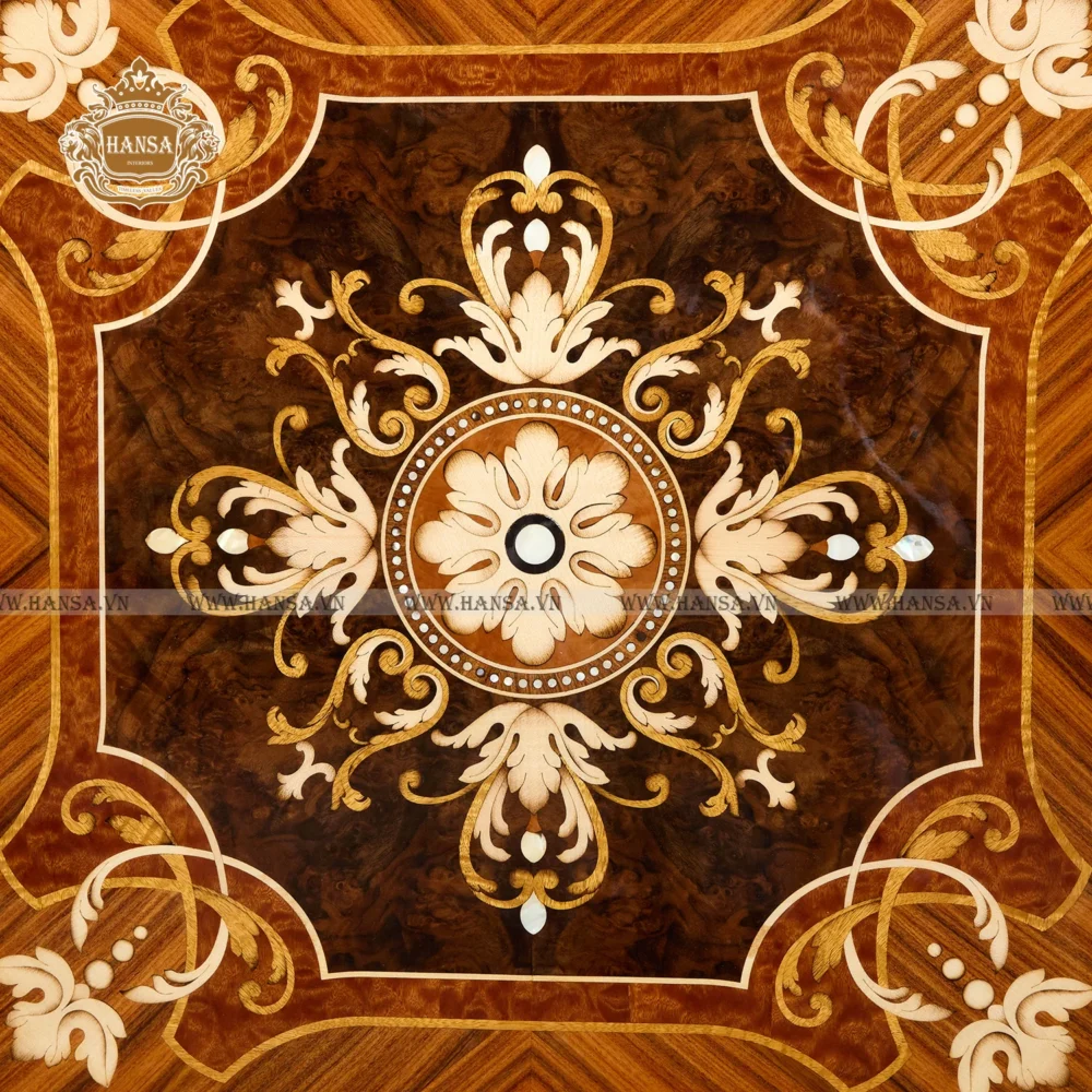 Đôn gỗ khảm hoa văn Rococo mẫu 04 là biểu tượng của sự sang trọng, đẳng cấp và tay nghề thủ công điêu luyện của các nghệ nhân tại Hansa.