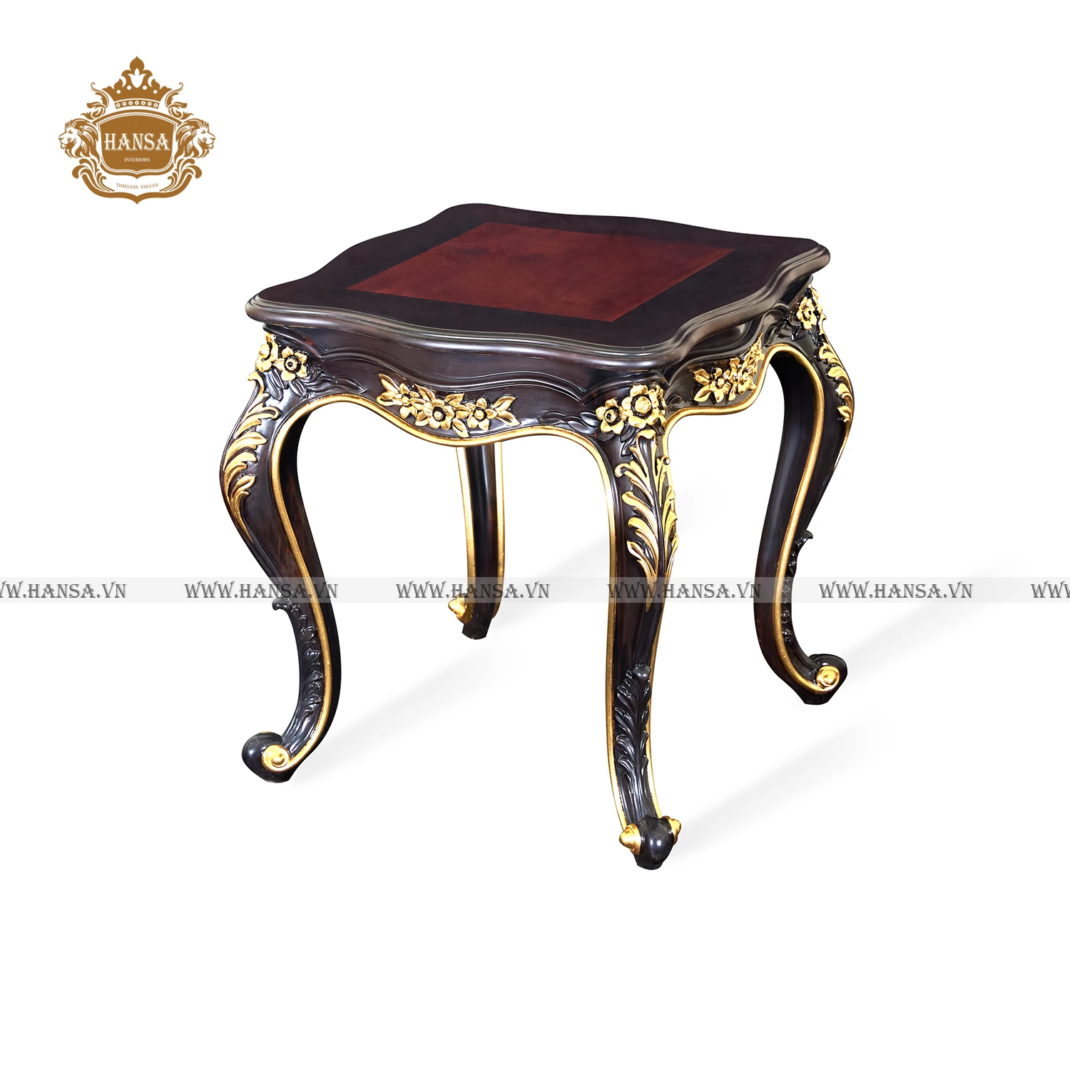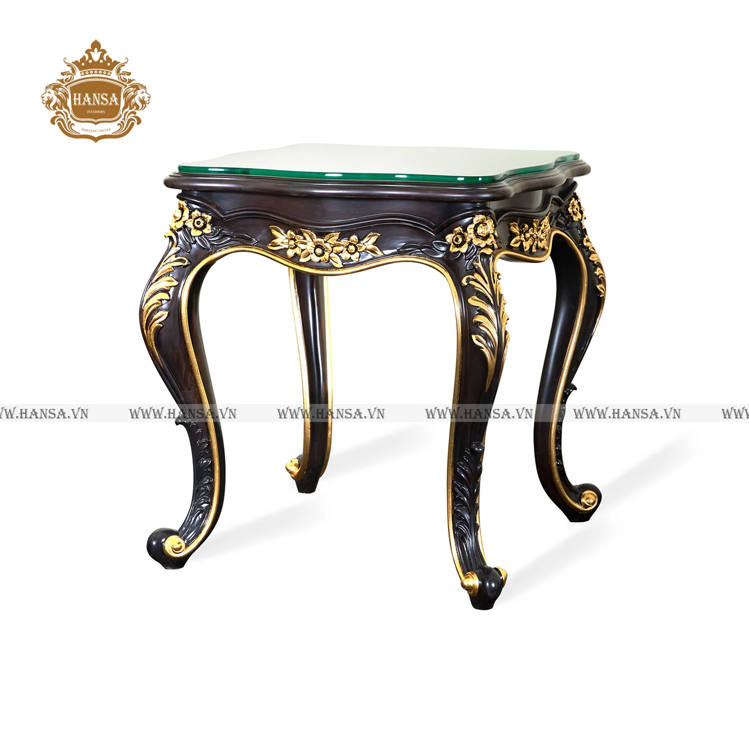 Bốn chân đôn cong duyên dáng theo phong cách cổ điển, được gia công vững chắc, mang lại sự ổn định tuyệt đối. Mặt bàn có thể được bảo vệ bằng kính cường lực trong suốt, giúp tôn lên phần khung gỗ chạm khắc tinh tế bên dưới.