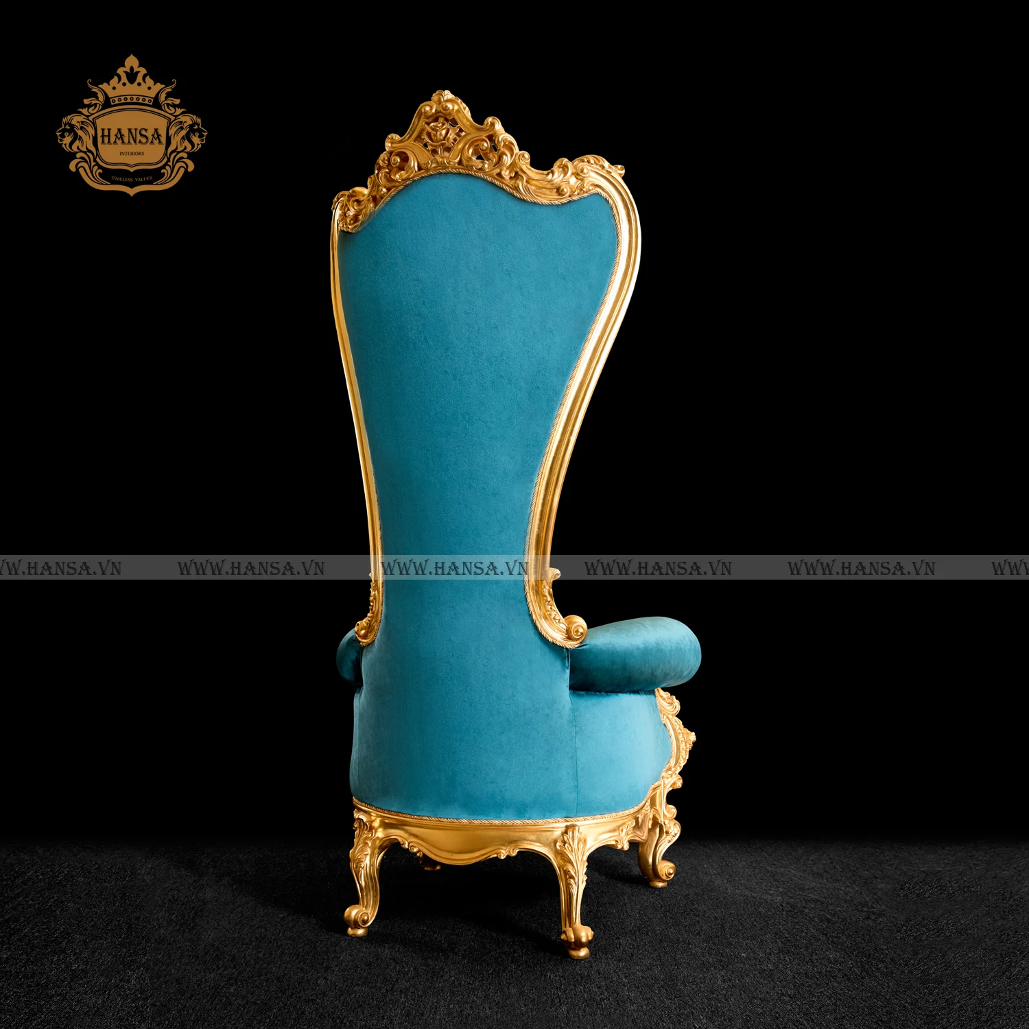 Ghế bành nhung ngọc bích chạm khắc bọc vàng là đỉnh cao của sự xa hoa và phong cách cổ điển vương giả. Chiếc ghế đơn này được thiết kế không chỉ để ngồi mà còn để trở thành một tác phẩm nghệ thuật uy nghi, xứng tầm với những không gian nội thất quyền quý nhất.