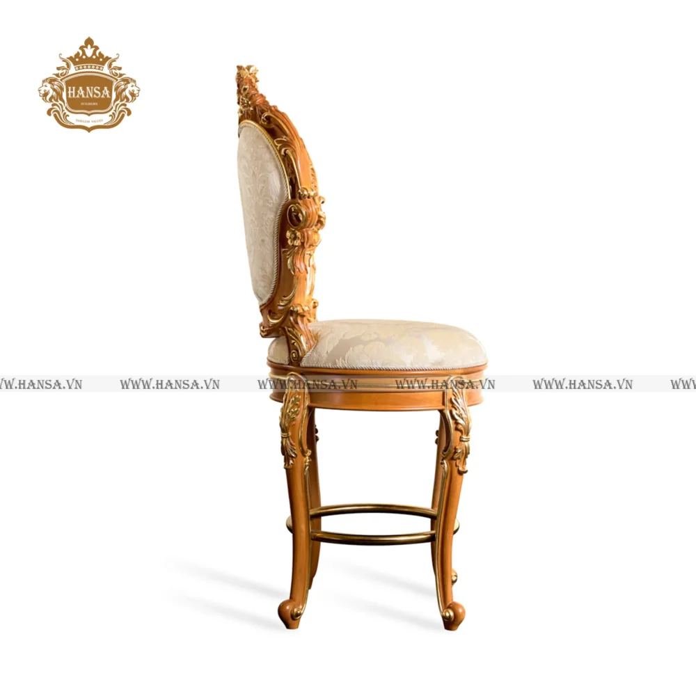 Chiếc ghế bar tân cổ điển lưng cao này là sự lựa chọn hoàn hảo để kiến tạo một không gian quầy bar, đảo bếp hay khu vực giải trí sang trọng, đậm chất hoàng gia. Không chỉ là một món nội thất, đây còn là một tuyên ngôn về phong cách và gu thẩm mỹ tinh tế của gia chủ.
