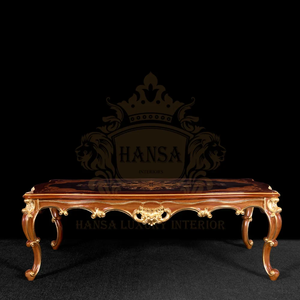 Bàn trà hoàng gia dát vàng cẩn hoa