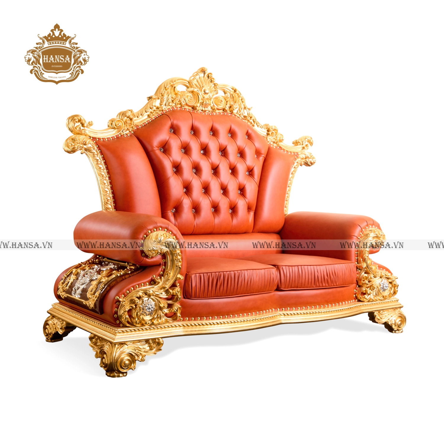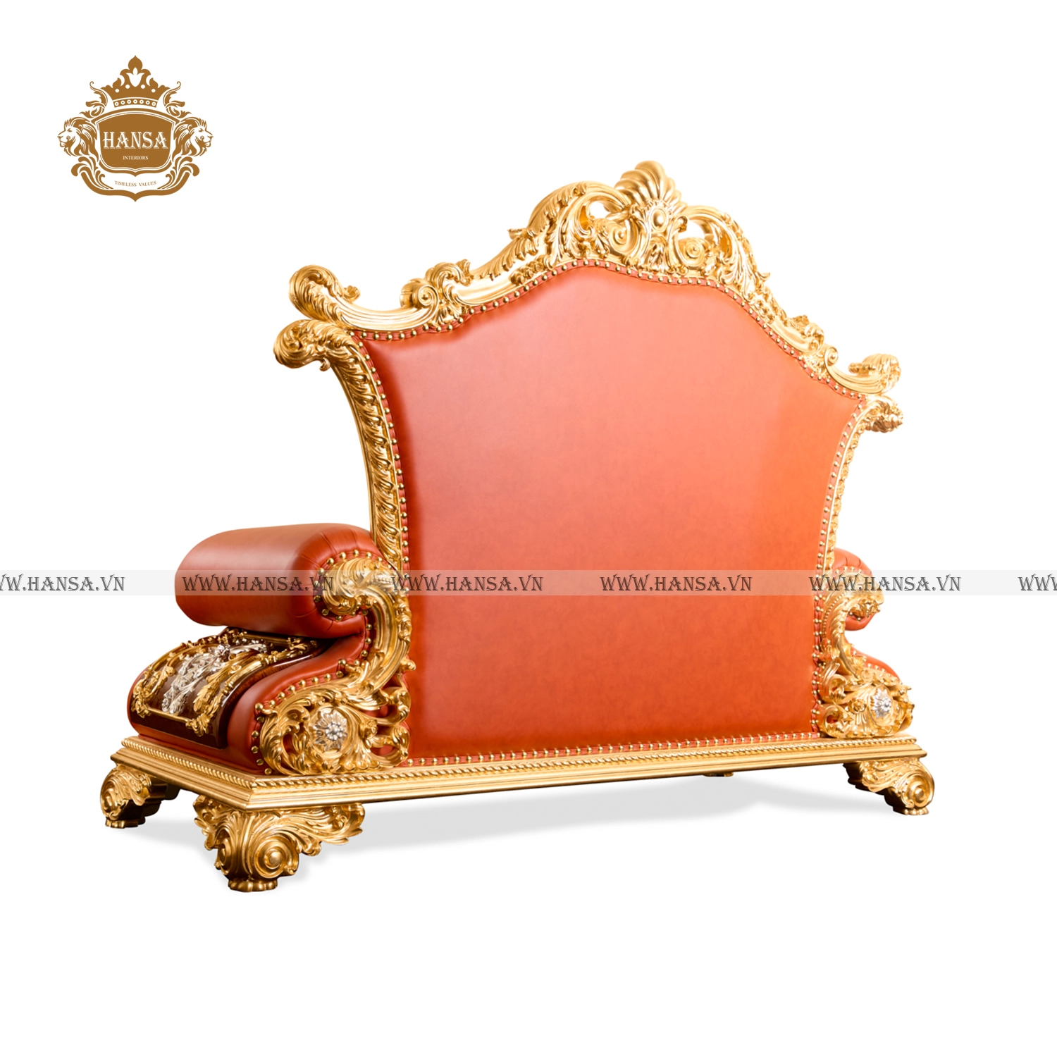 Bộ salon hoàng gia Versailles vàng kim là sự kết tinh của nghệ thuật nội thất cổ điển xa hoa, được thiết kế để trở thành trung tâm quyền lực và điểm nhấn vương giả trong phòng khách của bạn. Chiếc ghế đôi này gợi nhớ đến sự tráng lệ của cung điện Pháp dưới thời kỳ huy hoàng nhất.