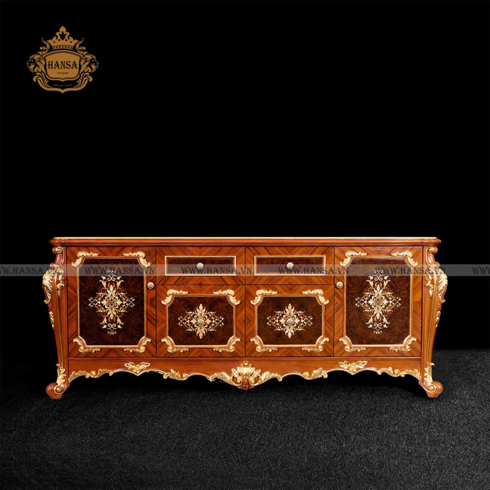 Nâng tầm không gian giải trí và khẳng định vị thế của bạn với Kệ TV Marquetry Hoàng Gia – một tuyệt tác nội thất không chỉ đơn thuần là nơi đặt TV, mà còn là một tác phẩm nghệ thuật đỉnh cao, mang đậm hơi thở của những cung điện Châu Âu tráng lệ.