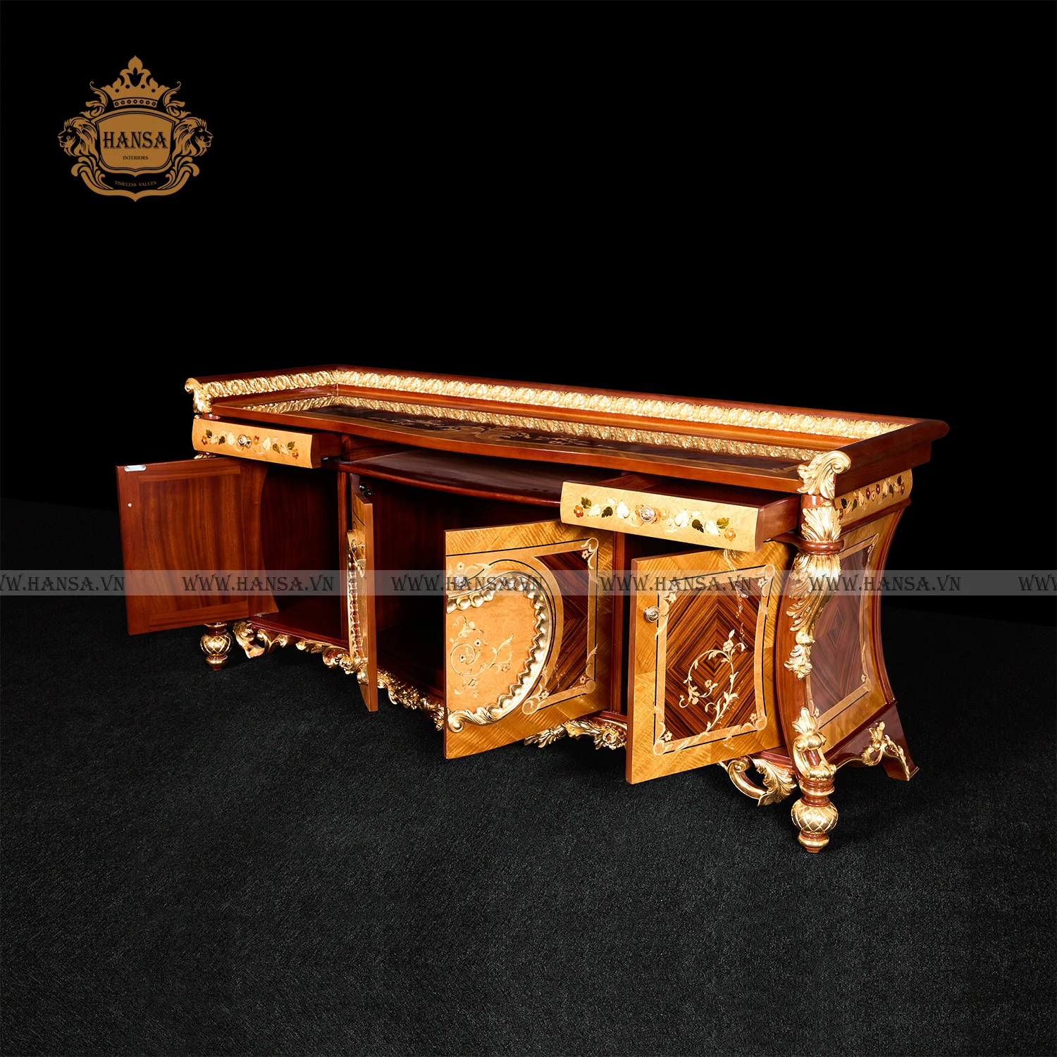 Tủ Tivi Marquetry Rococo là lựa chọn lý tưởng cho những ai say mê vẻ đẹp cổ điển, yêu thích sự lãng mạn, và trân trọng giá trị nghệ thuật thủ công. Chiếc tủ này không chỉ nâng tầm trải nghiệm giải trí mà còn biến không gian của bạn thành một phòng trưng bày nghệ thuật đầy cảm hứng.